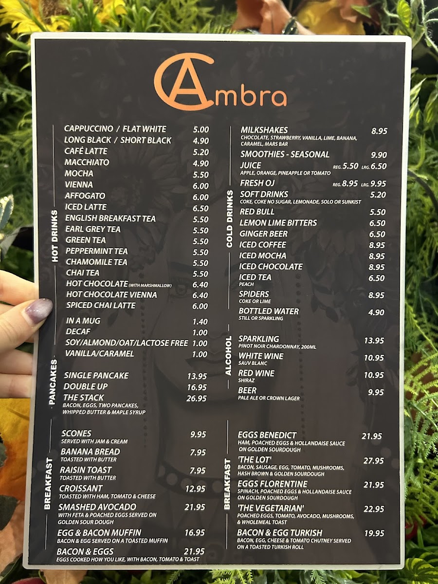Café Ambra prides itself on its diverse menu that caters to every palate. Whether you’re in the mood for a nourishing salad like the Caesar Salad (A$18.95) or desiring a hearty mains, the Fish & Chips (A$26.95) is a local favorite that promises to tantalize the taste buds with its crispy batter and perfectly cooked fish. Don't miss out on the extensive range of burgers, featuring the enticing Ambra's Chickie Burger (A$22.95) and the delectable Plant-Based Burger (A$22.95), ideal for meat-lovers and plant-lovers alike.